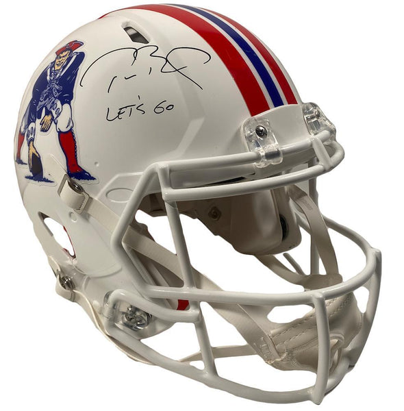 This authentic New England Patriots Throwback helmet has been personally hand-signed by Tom Brady with the inscription "Lets Go." It is officially licensed by the National Football League and comes with an individually numbered, tamper-evident hologram from Fanatics Authentic. To ensure authenticity, the hologram can be reviewed online. This process helps to ensure that the product purchased is authentic and eliminates any possibility of duplication or fraud.This helmet is limited to just 12 and the winning bidder will receive number "12" from the edition.