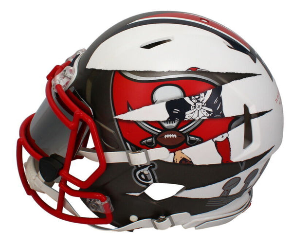 Tom Brady Autographed "Lets Go" Bucs / Patriots Ripped Speed Helmet Beckett LE