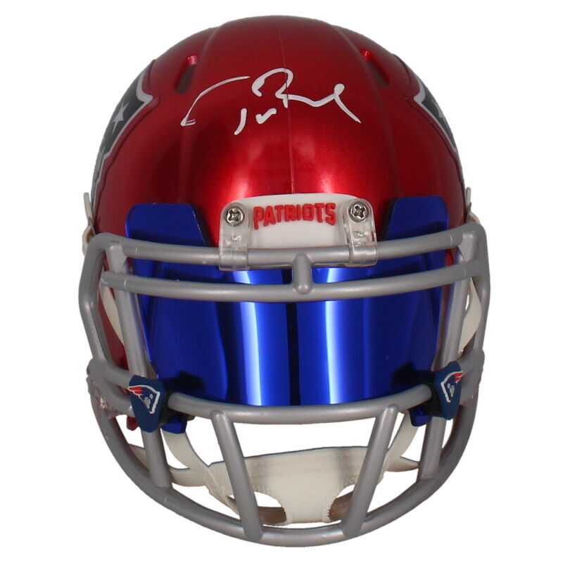 This mini flash speed helmet has been personally hand-signed by Tom Brady. Included with this helmet is a custom visor and 3D bumpers and decals. This has to be seen in person to truly appreciate how amazing it it. It is officially licensed by the National Football League and comes with an individually numbered, tamper-evident hologram from Fanatics Authentic. To ensure authenticity, the hologram can be reviewed online. This process helps to ensure that the product purchased is authentic and eliminates any possibility of duplication or fraud.