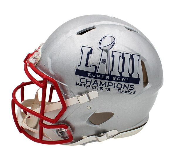 A New England Patriots Speed Authentic Super Bowl LIII NFL Helmet hand signed by Tom Brady. The item and signature are in excellent condition. Tom is a quarterback for the Tampa Bay Buccaneers. He spent the first 20 seasons of his career with the New England Patriots, playing in nine Super Bowls and winning six of them both of which are the most of any player in NFL history. He has won a record four Super Bowl MVP awards as well as three NFL MVP awards. AUTHENTICATION: The item is tagged with a Fanatics Authentic Serial Numbered and Databased Hologram