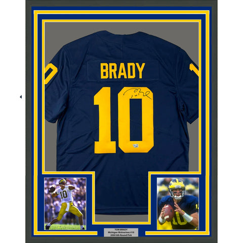 Framed Autographed/Signed Tom Brady 35x39 Michigan Wolverines Blue Authentic Lim