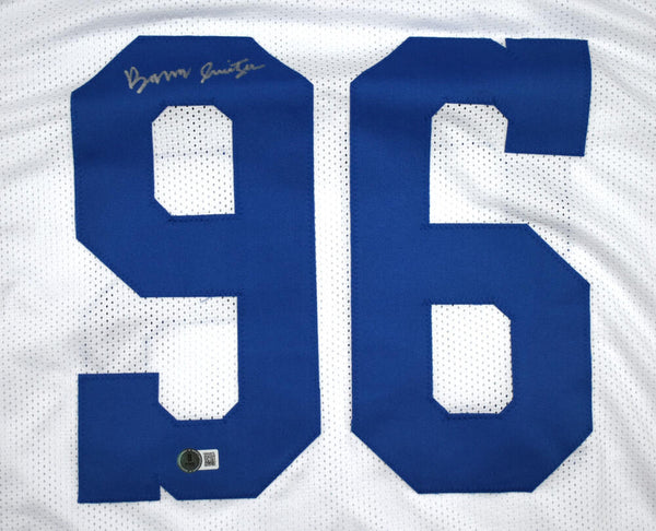 Barry Switzer Autographed White Pro Style STAT Jersey- Beckett W Hologram *Silver THIS IS NOT AN NFL JERSEY. THIS HAS NO TAGS, NO LOGOS, NO EMBLEMS. This is a hand autograph of Barry Switzer on a Custom Made (non name brand) Authentic Style Jersey with stitched letters and numbers. This item has a Beckett Witnessed Authentication, which comes with a numbered hologram and a QR code for verification. You can view this item on the Beckett Authentication website, it shows when and where the item was signed. It was signed either at a public autograph appearance or a private signing. This is a stock photo of the item. Although you may not receive this exact item, the item you receive is virtually identical and brand new in great shape. Jersey size is XL.