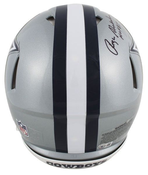 This Autographed Authentic Full Size Speed Proline Helmet with the inscription of "HOF 21 (Pearson), HOF 85 (Staubach) & HOF 94 (Dorsett)" has been Personally Signed by Roger Staubach, Tony Dorsett & Drew Pearson of the Dallas Cowboys. This item is 100% Authentic to include a hologram by Beckett Authentication Services. This item will come with the new Beckett Authentication hologram that has a scannable QR code rather than the traditional COA. If you would like to have a COA, you are welcome to reach out to Beckett for a printed certification once you receive your item. This is a BAS Witnessed Protection Program item which means a Beckett Authentication Service representative was present when this item was being signed. We conducted an autograph signing with Roger Staubach, Tony Dorsett & Drew Pearson where multiples of the same item were signed. While the photographs are representative of this item, the size, placement and strength of the signature may vary. Each item is hand signed, therefore, each autograph is unique. This item can be verified through BAS Witnessed.