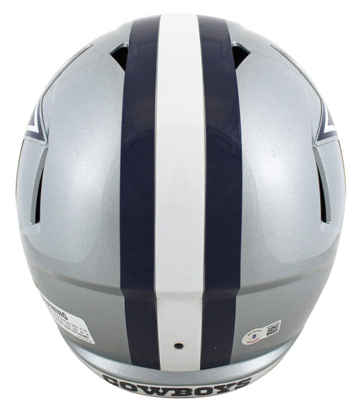 This Autographed Silver Full Size Speed Rep Helmet has been Personally Signed by Tony Dorsett of the Dallas Cowboys. This item is 100% Authentic to include a Certificate of Authenticity (COA) / hologram by Beckett Authentication Services. This is a BAS Witnessed Protection Program item which means a Beckett Authentication Service representative was present when this item was being signed. This is a stock item. We conducted an autograph signing with Tony Dorsett and we have several of these available. The one you will receive will be of equal quality to the one pictured. This item can be verified through BAS Witnessed.