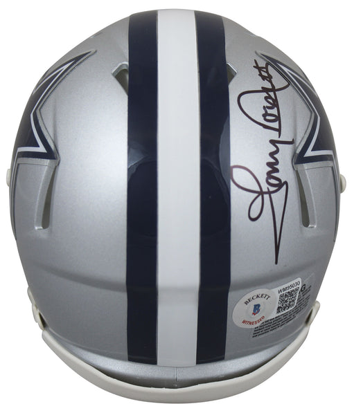 This Autographed Silver Speed Mini Helmet W/ Uv Mirrored Back Acrylic Display Case has been Personally Signed by Tony Dorsett of the Dallas Cowboys. This item is 100% Authentic to include a Certificate of Authenticity (COA) / hologram by Beckett Authentication Services. This is a BAS Witnessed Protection Program item which means a Beckett Authentication Service representative was present when this item was being signed. We conducted an autograph signing with Tony Dorsett where multiples of the same item were signed. While the photographs are representative of this item, the size, placement and strength of the signature may vary. Each item is hand signed, therefore, each autograph is unique. This item can be verified through BAS Witnessed.