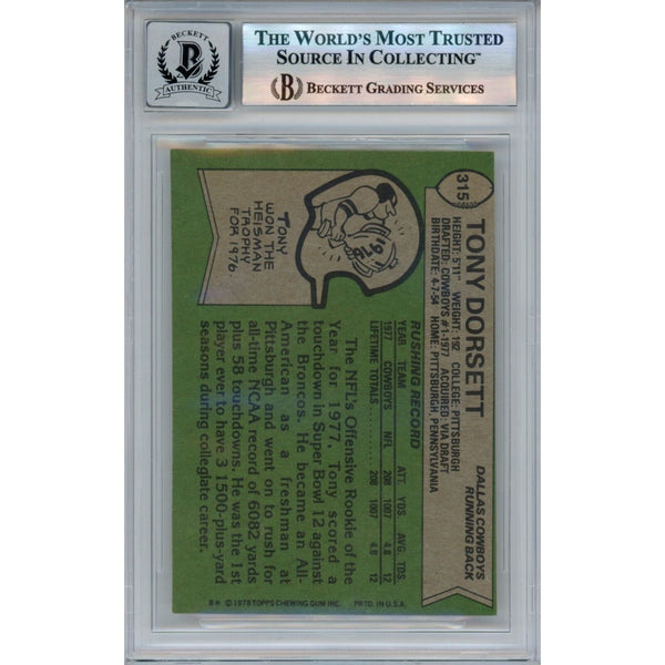 Tony Dorsett Autographed 1978 Topps #315 HOF 10 Grade Card Beckett 46490