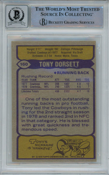 Tony Dorsett Autographed 1979 Topps #160 Trading Card Beckett 10 Slab 39282 The number in the listing title is just an inventory sku for our records and is not the authentication number. This is the exact item that you will receive so please see pictures for condition. This is a trading card that was personally autographed by Tony Dorsett. This has been professionally slabbed by Beckett Authentication Services (BAS) and includes a certificate of authenticity from Denver Autographs.