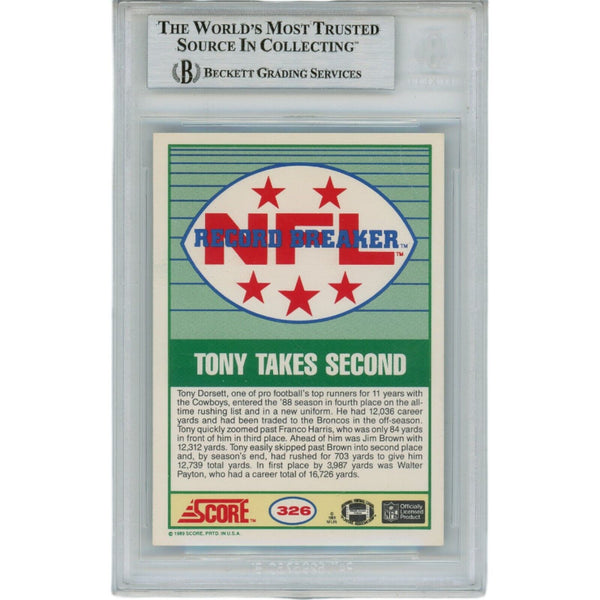 The number in the listing title is just an inventory sku for our records and is not the authentication number. The item pictured is the exact item you will receive, please see photos for condition. This is a Dallas Cowboys 1989 Score 326 Slabbed Trading Card that was personally autographed by Tony Dorsett. Includes a certificate of authenticity from Beckett Authentication Services (BAS) and Denver Autographs.FREE SHIPPING within the USA on orders over $10!