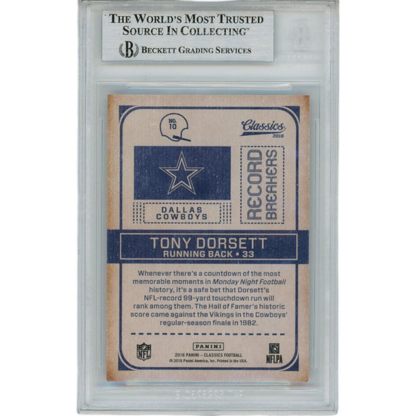 Tony Dorsett Autographed 2016 Classics 10 Slabbed Trading Card Beckett 45932