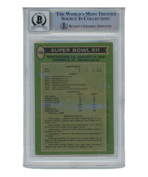 Tony Dorsett Autographed/Signed 1978 Topps #168 Trading Card Beckett 39430 The number in the listing title is just an inventory sku for our records and is not the authentication number. This is a 1978 Topps #168 trading card that was personally autographed by Tony Dorsett. This was professionally authenticated and slabbed by Beckett Authentication Services (BAS), also includes a certificate of authenticity from Denver Autographs.
