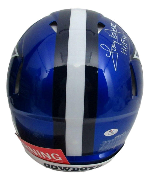Tony Dorsett HOF Dallas Cowboys Signed/Inscribed "HOF 94" Full Size Blue Flash Authentic Football Helmet. This helmet is authenticated by PSA/DNA and includes their Tamper-proof Sticker and Certificate of Authenticity.