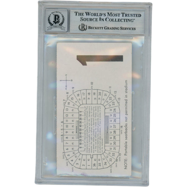 The number in the listing title is just an inventory sku for our records and is not the authentication number. The item pictured is the exact item you will receive, please see photos for condition. This is a Pittsburgh Panthers 09/11/1976 Slabbed Ticket Stub Seat 2 Row 3 that was personally autographed by Tony Dorsett includes "1976 National Championship" and "1976 Heisman". Includes a certificate of authenticity from Beckett Authentication Services (BAS) and Denver Autographs.FREE SHIPPING within the USA on orders over $10!