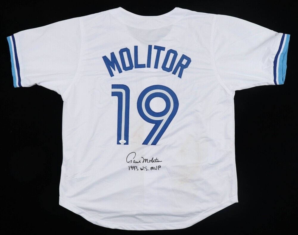 Custom on-field style jersey. Everything is sewn on, size XL. Hand-signed and inscribed by Paul Molitor (HOF). Jerseys have slight stains on the front.The lot / autograph(s) includes an official James Spence Authentication (JSA) hologram and matching COA for authenticity purposes. The signing of this item was witnessed by JSA.Authentication: JSA COA