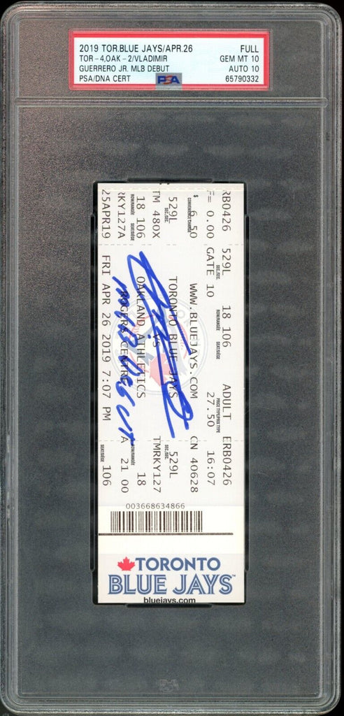 Vladimir Guerrero Jr. Signed 4/26/19 MLB Debut Full Ticket PSA 10/10 GEM MINT