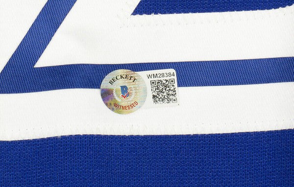 Featured is a Vladimir Guerrero Jr. signed custom blue pro style baseball jersey. This jersey was hand signed by Vladimir Guerrero Jr. in the presence of a Beckett authentication representative. Included with the jersey is a Beckett witnessed hologram and certificate of authentication. This jersey would make a great addition to any sports memorabilia collection. SPECIFICATIONS Autographed By: Vladimir Guerrero Jr. Team: Toronto Blue Jays Sport: Baseball Authentication: Beckett Grading Services
