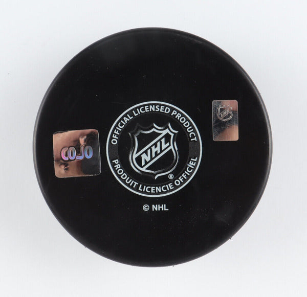 Toronto Maple Leafs logo hockey puck. Hand-signed and inscribed by Borje Salming (HOF). The lot / autograph(s) includes an official COJO Sports Collectibles Inc. hologram and matching COA for authenticity purposes.Authentication: COJO COA