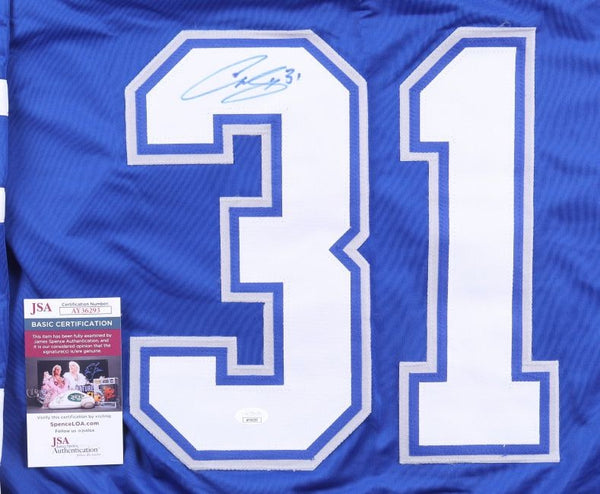 Featured is a Curtis Joseph signed custom hockey jersey. This jersey has been hand signed by Joseph and comes with the JSA hologram and certificate of authenticity. This jersey features professionally sewn letters and numbers and is size XL. This jersey has no team tags or emblems and is intended as a sports collectible. This jersey would make a great addition to any sports memorabilia collection!. SPECIFICATIONS Autographed By: Curtis Joseph Team: Toronto Maple Leafs Sport: Hockey Authentication: James Spence Authentication (JSA)