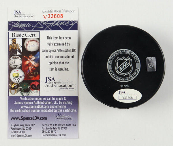 Toronto Maple Leafs Logo hockey puck. Hand-signed by Leo Komarov.The lot / autograph(s) includes an official James Spence Authentication (JSA) hologram and matching COA for authenticity purposes.Authentication: JSA COA