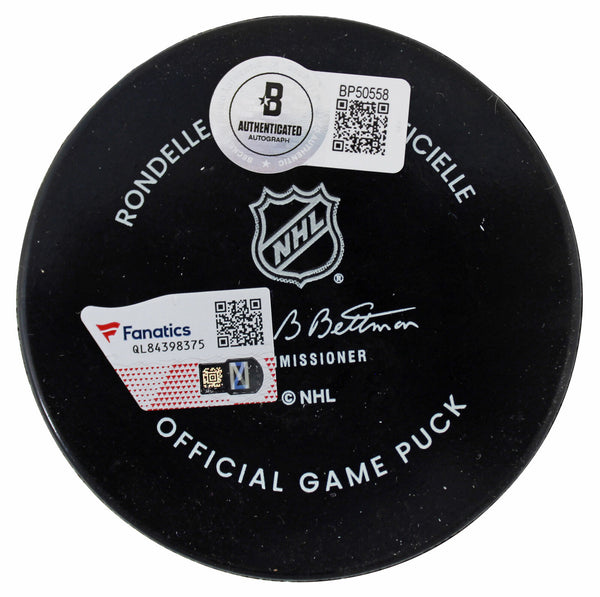 This Autographed Official Game Hockey Puck has been Personally Signed by Auston Matthews of the Toronto Maple Leafs. This item is 100% Authentic to include a hologram by Beckett Authentication Services. This item will come with an affixed Beckett Authentication Services (BAS) authentication sticker, which includes a scannable QR code to verify authenticity. Please note that Beckett no longer provides serial-numbered COA cards, and the attached BAS sticker will serve as the complete authentication for this item. We conducted an autograph signing with Auston Matthews where multiples of the same item were signed. While the photographs are representative of this item, the size, placement and strength of the signature may vary. Each item is hand signed, therefore, each autograph is unique. This item can be verified through BAS. These pucks were also authenticated by Fanatics, however, Fanatics did not enter them into their database and will not show up, but will have its Fanatics hologram. We had these pucks authenticated by Beckett afterwards.