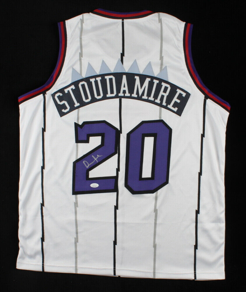 Custom on-court style jersey. Everything is sewn on, size XL. Has been hand-signed by Damon Stoudamire.The lot / autograph(s) includes an official James Spence Authentication (JSA) hologram and matching COA for authenticity purposes.Authentication: JSA COA