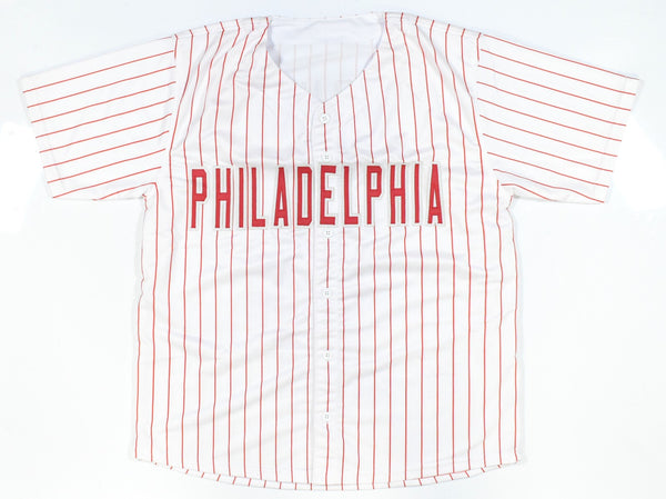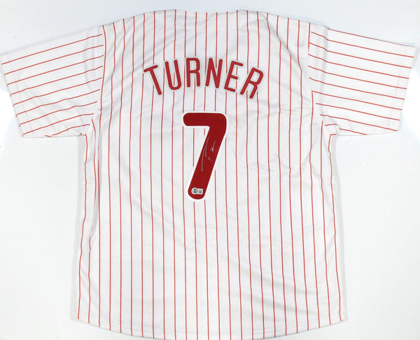 THIS IS NOT AN MLB JERSEY. THIS HAS NO TAGS, NO LOGOS, NO EMBLEMS. This is a hand autograph of Trea Turner of the Philadelphia Phillies on a Custom made (non-name brand) Authentic Style Jersey with stitched letters and numbers. This item has a Beckett Witnessed Authentication, which comes with a Beckett numbered sticker hologram and a QR Code for verification. You can view this item on the Beckett Authentication website. It was signed either at a public autograph appearance or a private signing. This is a stock photo of the item. Although you may not receive this exact item, the item you receive is virtually identical and brand new in great shape. Jersey size is XL. THIS IS NOT AN MLB JERSEY. THIS HAS NO TAGS, NO LOGOS, NO EMBLEMS. This is a hand autograph of Trea Turner of the Philadelphia Phillies on a Custom made (non-name brand) Authentic Style Jersey with stitched letters and numbers. This item has a Beckett Witnessed Authentication, which comes with a Beckett numbered sticker hologram and a QR Code for verification. You can view this item on the Beckett Authentication website. It was signed either at a public autograph appearance or a private signing. This is a stock photo of the item. Although you may not receive this exact item, the item you receive is virtually identical and brand new in great shape. Jersey size is XL.