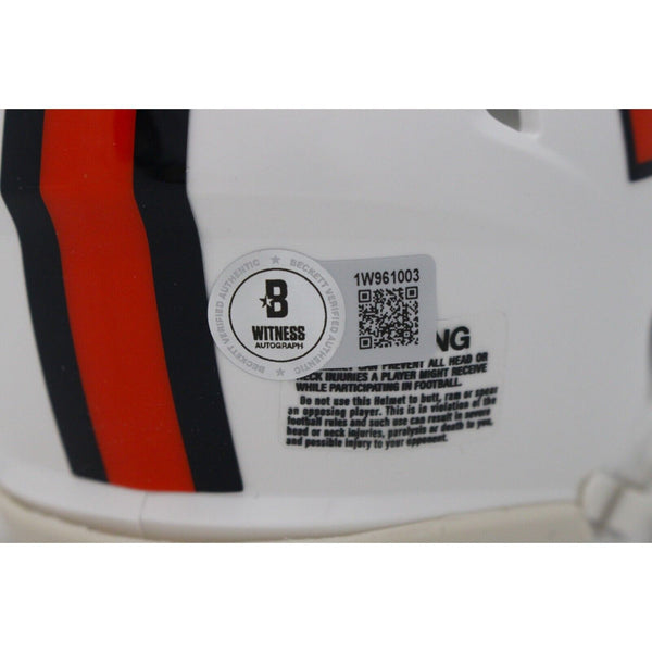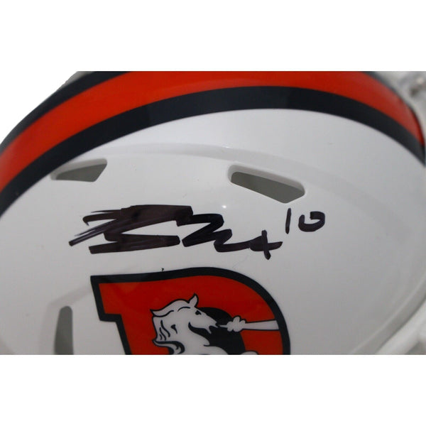 The number in the listing title is just an inventory sku for our records and is not the authentication number. The item pictured is a stock photo unless otherwise noted. This is a Denver Broncos Snow Cap Speed Mini Helmet that was personally autographed by Bo Nix. Includes a certificate of authenticity from Beckett Authentication Services (BAS) and Denver Autographs.