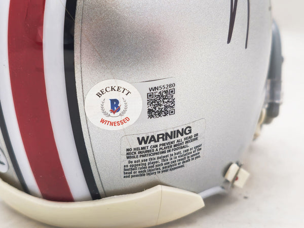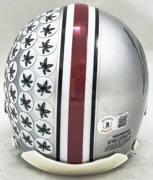 This is an Ohio State Buckeyes Silver VSR4 Mini Helmet that has been hand signed by CJ C.J. Stroud This item has been witnessed and certified authentic by Beckett Authentication (BAS) and comes with their tamper-proof witness sticker.