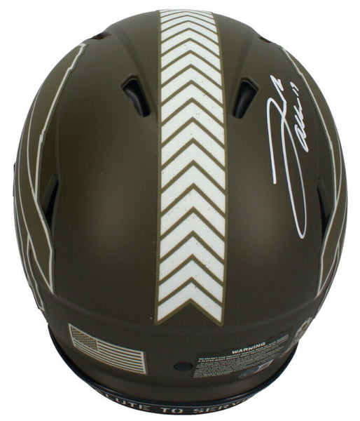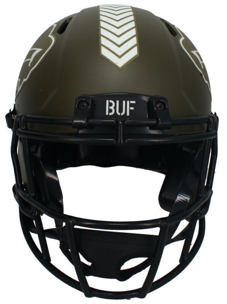This Buffalo Bills authentic Salute to Service Riddell Speed helmet has been personally hand-signed by Josh Allen. It comes with an individually numbered, tamper-evident hologram from Beckett Authentic. To ensure authenticity, the hologram can be reviewed online. This process helps to ensure that the product purchased is authentic and eliminates any possibility of duplication or fraud.