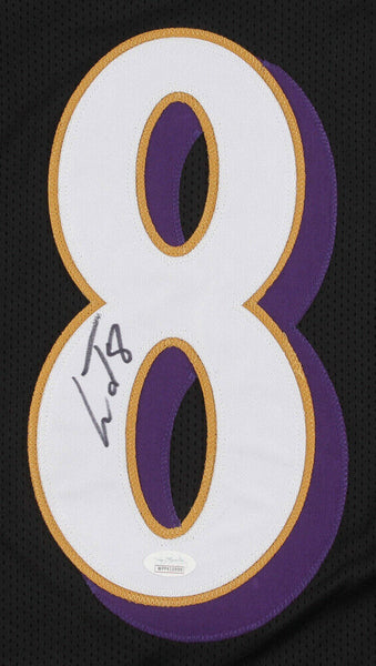 Custom on-field style jersey. Everything is sewn on, size XL. Hand-signed in black felt-tip pen by Lamar Jackson. The lot / autograph(s) includes an official James Spence Authentication (JSA) hologram and matching COA for authenticity purposes.Authentication: JSA COA