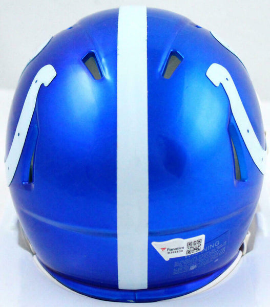 Peyton Manning Autographed Indianapolis Colts Flash Speed Mini Helmet-Fanatics Auth *White This is a hand autograph of Peyton Manning of the Indianapolis Colts on a Riddell Football Flash Speed Mini Helmet. This item has a Fanatics Authentication, which comes with a numbered sticker hologram and a matching Fanatics Certificate of Authenticity. You can view this item on the Fanatics Authentication website and it shows when and where the item was signed. It was signed either at a public autograph appearance or a private signing. This is a stock photo of the item. Although you may not receive this exact item, the item you receive is virtually identical and brand new in great shape.