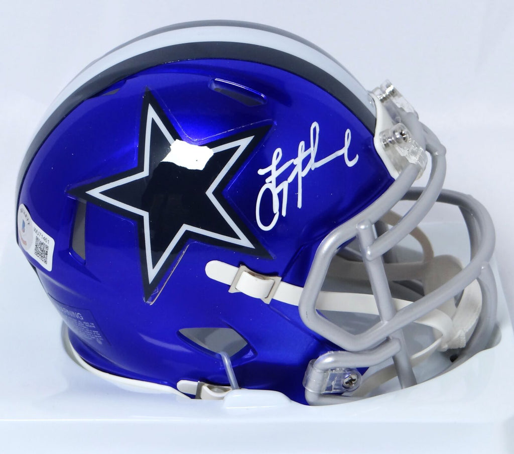 This is a hand autograph of Troy Aikman of the Dallas Cowboys on a Riddell Football Flash Speed Mini Helmet. It has a Beckett Authentication, which comes with a numbered sticker and a matching Beckett Certificate of Authenticity. You can view this item on the Beckett Authentication website, and it shows when and where the item was signed. It was signed either at a public autograph appearance or a private signing. This photo is the exact item that you will be receiving. Please see pictures for further details. This is a hand autograph of Troy Aikman of the Dallas Cowboys on a Riddell Football Flash Speed Mini Helmet. It has a Beckett Authentication, which comes with a numbered sticker and a matching Beckett Certificate of Authenticity. You can view this item on the Beckett Authentication website, and it shows when and where the item was signed. It was signed either at a public autograph appearance or a private signing. This photo is the exact item that you will be receiving. Please see pictures for further details.