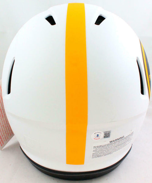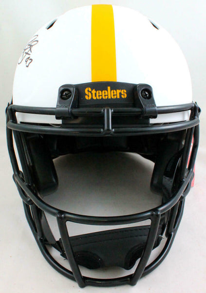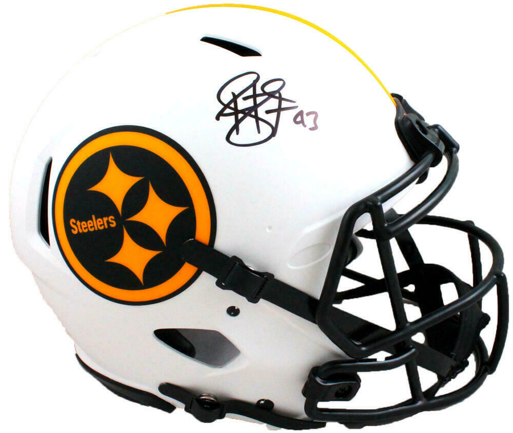Troy Polamalu Autographed F/S Pittsburgh Steelers Lunar Speed Authentic Helmet-Beckett W Hologram *Black This is a hand autograph of Troy Polamalu of the Pittsburgh Steelers on a Riddell Football Full Size Lunar Speed Authentic Helmet. This item has a Beckett Witnessed Authentication, which comes with a Beckett numbered sticker hologram and a generic Certificate of Authenticity. You can view this item on the Beckett Authentication website and it shows when and where the item was signed. It was signed either at a public autograph appearance or a private signing. This is a stock photo of the item. Although you may not receive this exact item, the item you receive is virtually identical and brand new in great shape.