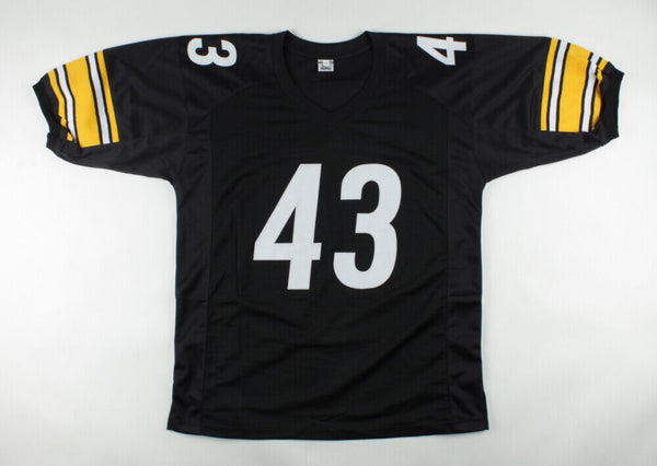 Custom on-field style jersey. Everything sewn on, size XL. Hand-signed by Troy Polamalu.The lot / autograph(s) includes an official Beckett Authentication Services serially-numbered hologram for authenticity purposes. The signing of this item was witnessed by Beckett.Authentication: Beckett Hologram