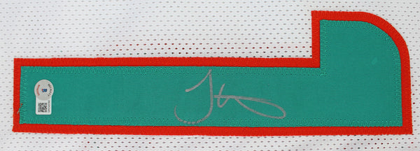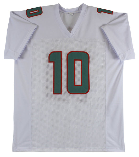 This Autographed White Pro Style Jersey has been Personally Signed by Tyreek Hill of the Miami Dolphins. This item is 100% Authentic to include a hologram by Beckett Authentication Services. This item will come with the new Beckett Authentication hologram that has a scannable QR code rather than the traditional COA. If you would like to have a COA, you are welcome to reach out to Beckett for a printed certification once you receive your item. This is a BAS Witnessed Protection Program item which means a Beckett Authentication Service representative was present when this item was being signed. We conducted an autograph signing with Tyreek Hill where multiples of the same item were signed. While the photographs are representative of this item, the size, placement and strength of the signature may vary. Each item is hand signed, therefore, each autograph is unique. This item can be verified through BAS Witnessed. This is a X-Large sized, non-branded, custom-stitched Jersey.