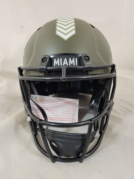 TYREEK HILL AUTOGRAPHED MIAMI DOLPHINS FULL SIZE SALUTE TO SERVICE (STS) SPEED AUTHENTIC HELMETBECKETT QRTHIS MEANS THE HELMET WAS SIGNED WITH A BECKETT REPRESENTATIVE PRESENT SO YOU CAN BE 100% CERTAIN ITS THE REAL THING.