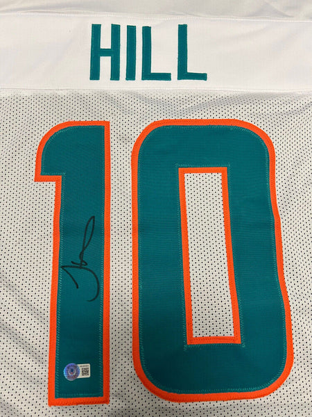 Custom on-field style jersey. Everything is sewn on, size XL. Hand-signed by Tyreek Hill.The lot / autograph(s) includes an official Beckett Authentication Services serially numbered hologram and QR Code Card for authenticity purposes. The signing of this item was witnessed by Beckett. Authentication: Beckett QR Code Card
