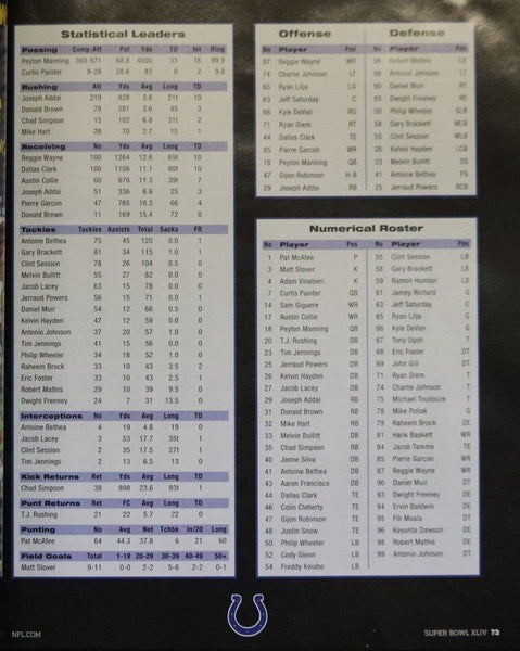 February 7, 2010 Super Bowl XLIV Hologram Game Program New Orleans Saints vs. Indianapolis Colts. This program is in Excellent Condition.