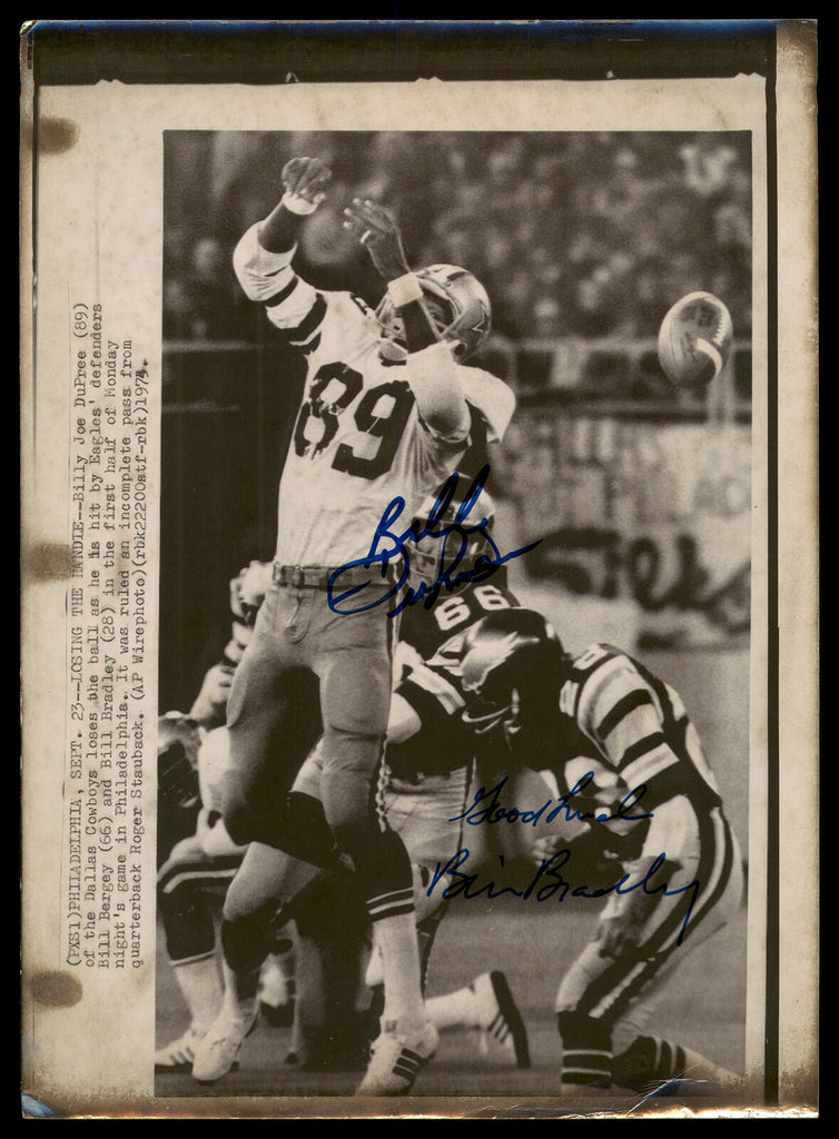 This is a 8x11 AP Photo that has been hand signed by Billy Joe Dupree & Bill Bradley. This item is guaranteed to pass any third party authentication company including Beckett, PSA/DNA & JSA authentication.