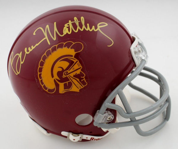 Riddell USC Trojans mini helmet has been hand-signed by Bruce Matthews.The autograph(s) includes an official James Spence Authentication (JSA) hologram and matching COA for authenticity purposes. The signing of this item was witnessed by JSA.Authentication: JSA COA