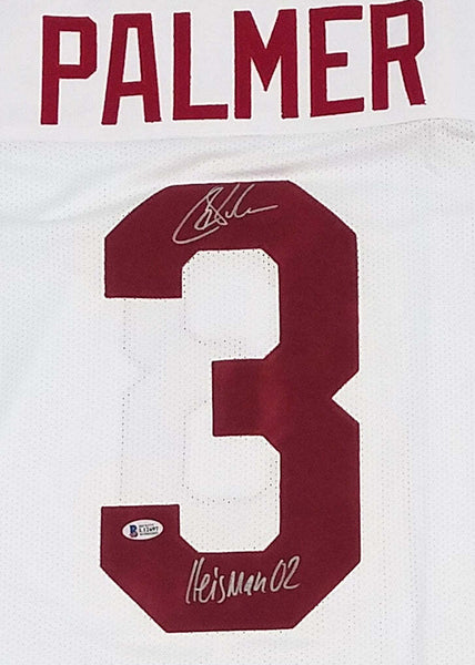 Carson Palmer Signed USC Trojans White Custom Jersey W/Heisman 02 Beckett