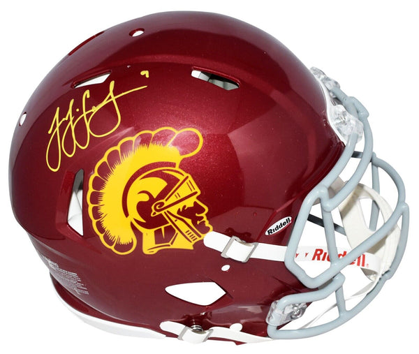JuJu Smith-Schuster, former All-American wide receiver for the Trojans, has hand signed this USC Riddell Speed full-size authentic helmet at a private signing. This helmet is fully padded inside like the ones worn on the field. This item is authenticated by Beckett Authentication Services and was signed in the presence of one of their representatives. Their tamper-evident hologram featuring a QR code and serial number is on the item. The authenticity can be verified online by entering the serial number or scanning the QR code.Item pictured may not be the exact item you will receive. It will be similar quality, and we guarantee your satisfaction.