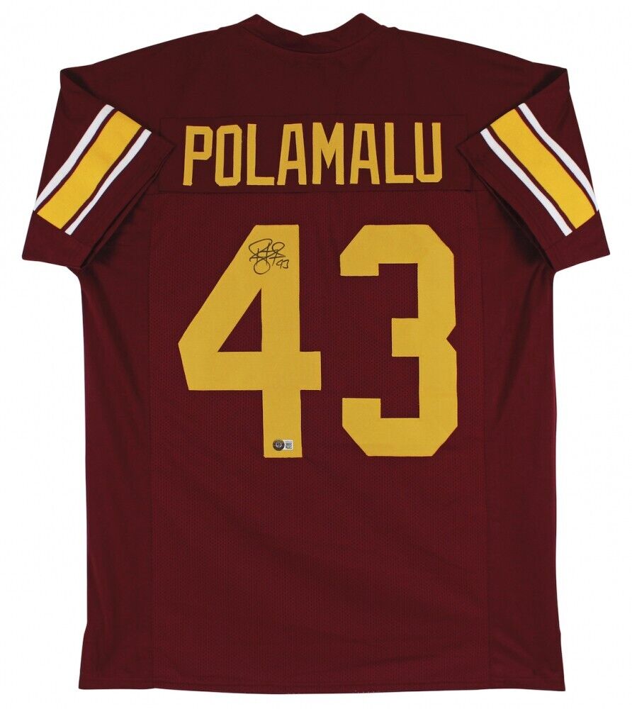 Custom on-field style jersey. Everything sewn on, size XL. Hand-signed and inscribed by Troy Polamalu (Pittsburgh Steelers, HOF).The lot / autograph(s) includes an official Beckett Authentication Services serially-numbered hologram for authenticity purposes. The signing of this item was witnessed by Beckett.Authentication: Beckett Hologram