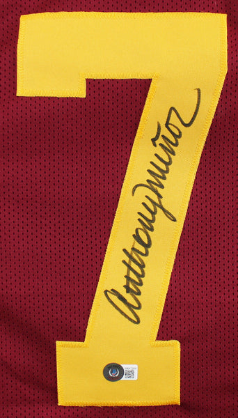 This Autographed Maroon Pro Style Jersey has been Personally Signed by Anthony Munoz of the USC Trojans. This item is 100% Authentic to include a hologram by Beckett Authentication Services. This item may come with the new Beckett Authentication hologram that has a scannable QR code rather than the traditional COA. If you would like to have a COA, you are welcome to reach out to Beckett for a printed certification once you receive your item. This is a BAS Witnessed Protection Program item which means a Beckett Authentication Service representative was present when this item was being signed. We conducted an autograph signing with Anthony Munoz where multiples of the same item were signed. While the photographs are representative of this item, the size, placement and strength of the signature may vary. Each item is hand signed, therefore, each autograph is unique. This item can be verified through BAS Witnessed. This is a X-Large sized, non-branded, custom-stitched Jersey.
