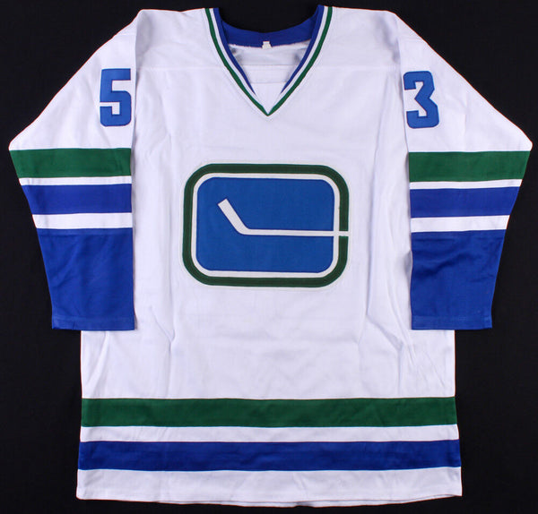 Custom on-ice style jersey. Everything sewn on, size XL. Hand-signed in silver paint pen by Bo Horvat. The lot / autograph(s) includes an official James Spence Authentication (JSA) hologram and matching COA for authenticity purposes.Authentication: JSA COA