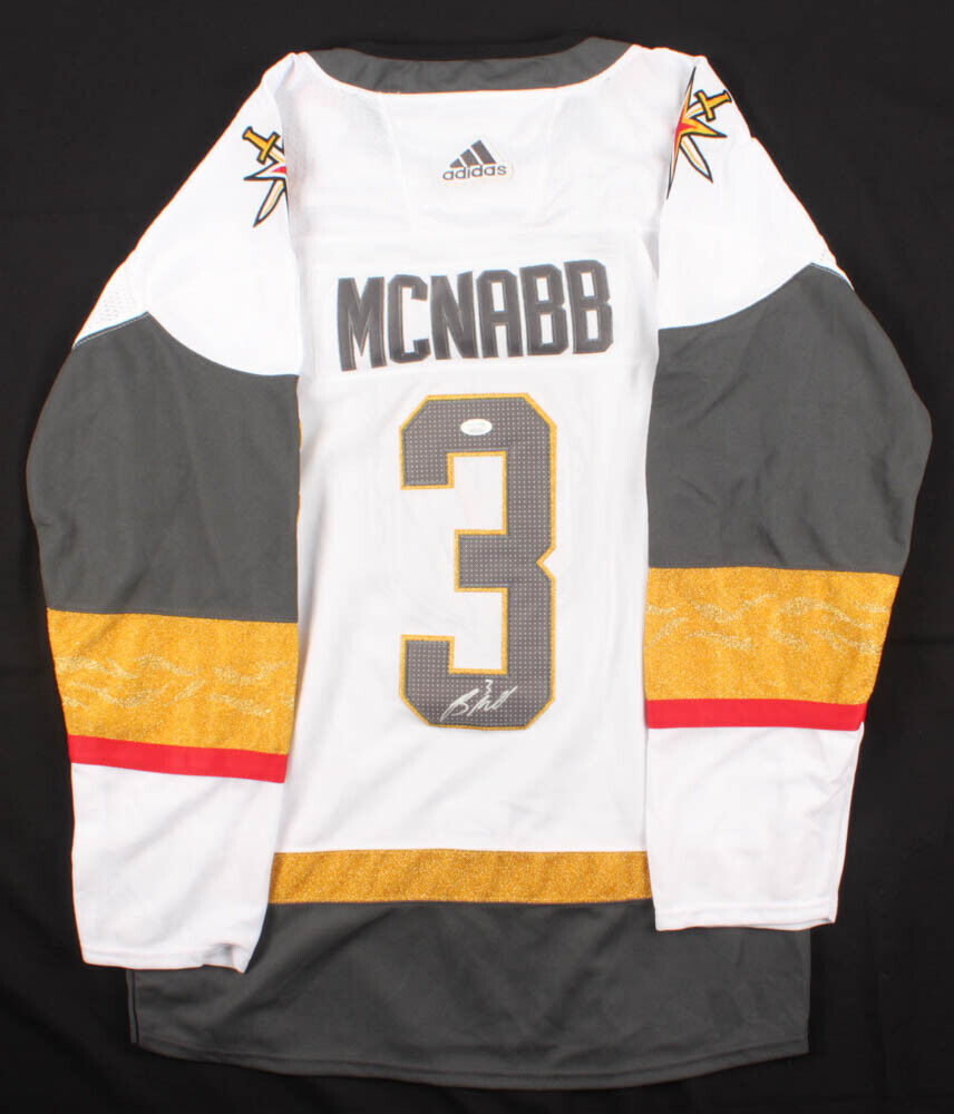 Adidas on-ice style jersey. Everything sewn on, size 54. Hand-signed in silver paint pen by Brayden McNabb. The lot / autograph(s) includes an official James Spence Authentication (JSA) hologram and matching COA for authenticity purposes.Authentication: JSA COA