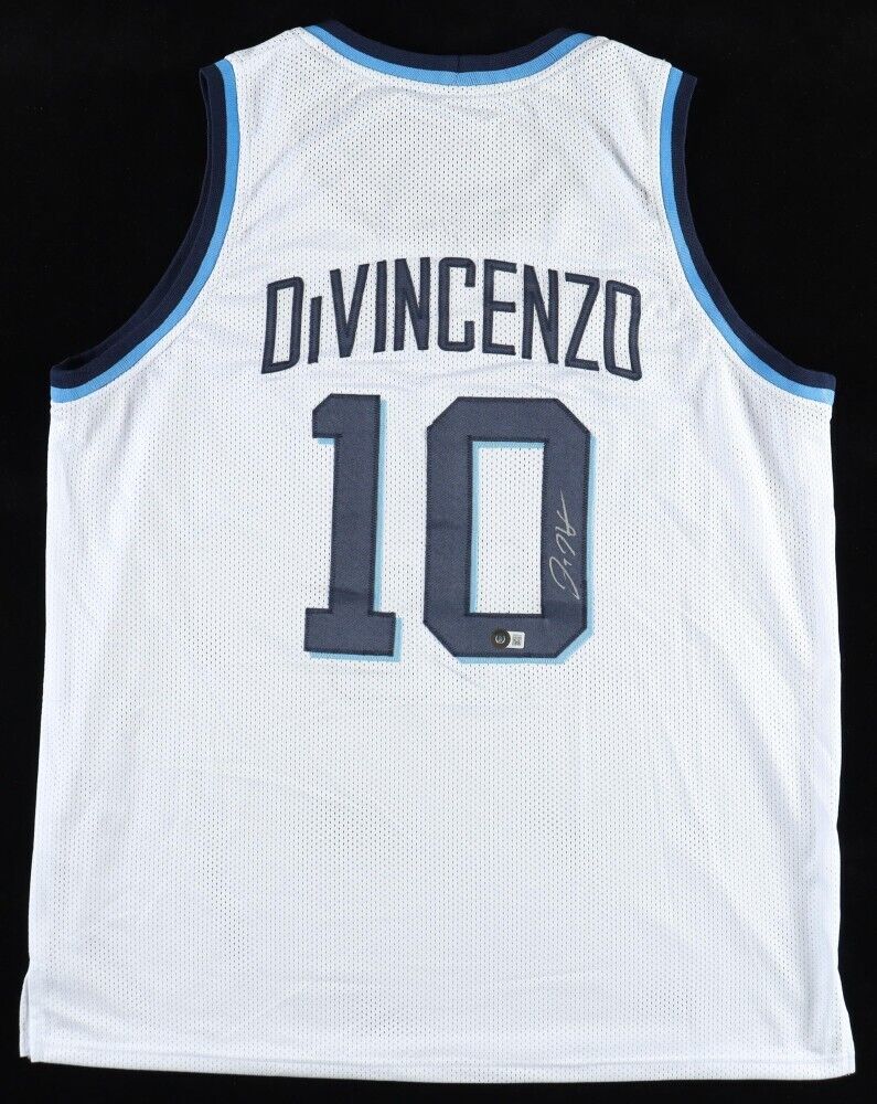 Custom on-court style jersey. Everything is sewn on, size XL. Jersey is hand-signed by Donte DiVincenzo (Villanova University).The autograph includes an official Beckett Authentication Services serially numbered hologram for authenticity purposes. The signing of this item was witnessed by Beckett.Authentication: Beckett HologramCustom on-court style jerseys are a more affordable option for autograph seekers. These jerseys do not have any brand name or tags and are made in the Philippines. They feature stitched on names and numbers and are made to look very similar to the on-field jerseys that the players wear. These custom jerseys are very commonly used in the memorabilia industry.