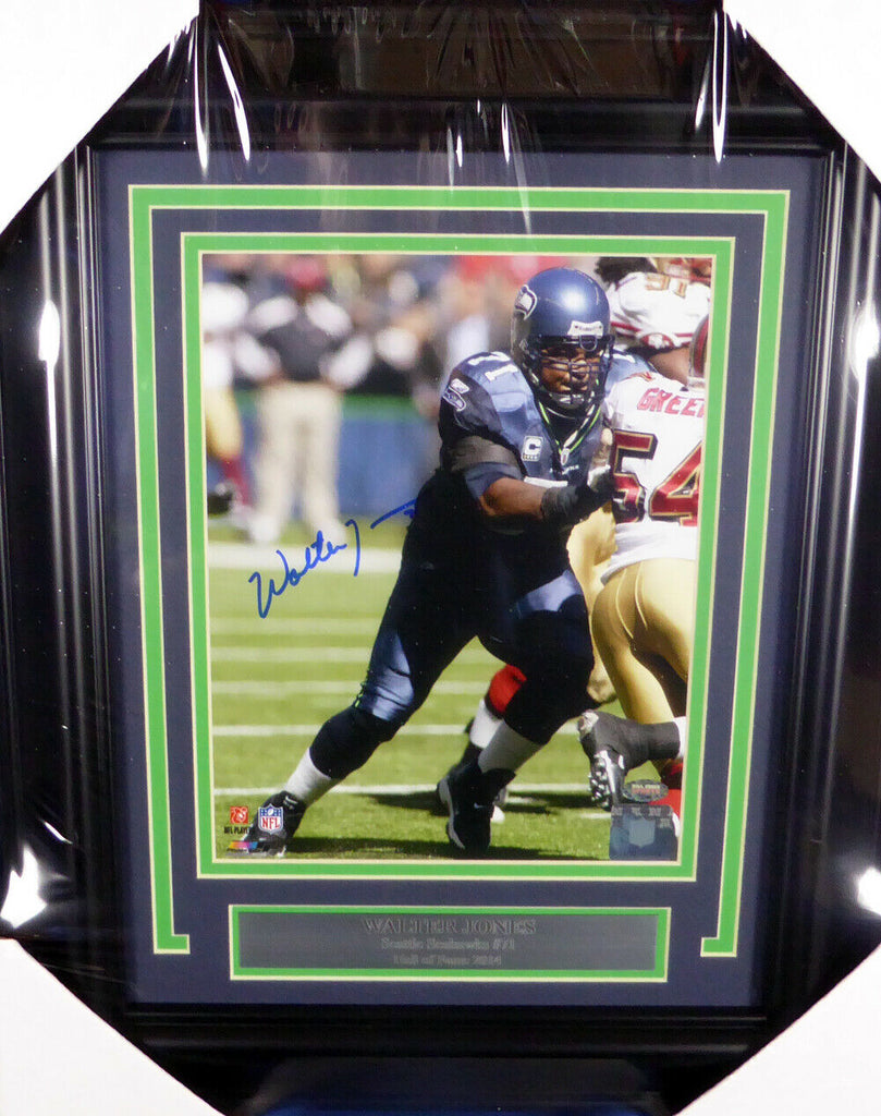 This is a Framed 8x10 Photo, approximately 15x18 with the frame, that has been hand signed by Walter Jones. This item was signed in the presence of a Mill Creek Sports representative and comes with their serial numbered hologram and matching certificate of authenticity.