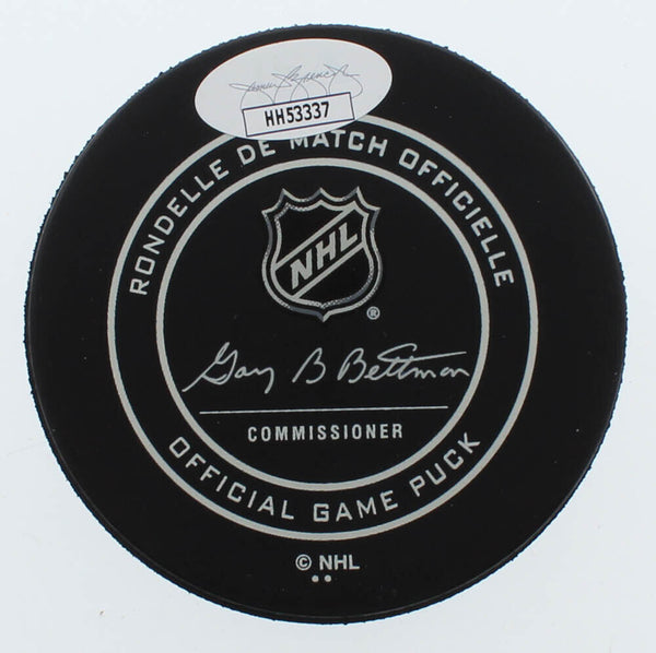 2018 NHL Stadium Series Logo Hockey Puck. Hand-signed in silver paint pen by Braden Holtby. (Washington Captials) The lot / autograph(s) includes an official James Spence Authentication (JSA) hologram and matching COA for authenticity purposes.Authentication: JSA COA
