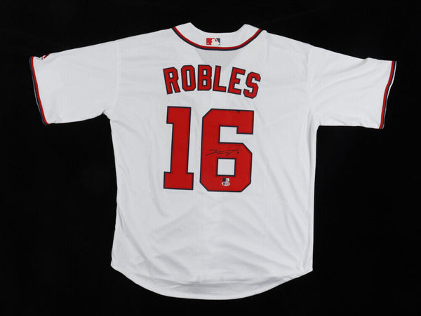 Custom on-field Majestic Style jersey. Everything is sewn on, size XL. Has been hand-signed by Victor Robles. The lot / autograph(s) includes an official Beckett Authentication Services serially-numbered hologram and QR Code card for authenticity purposes.Authentication: Beckett Hologram & QR Code card