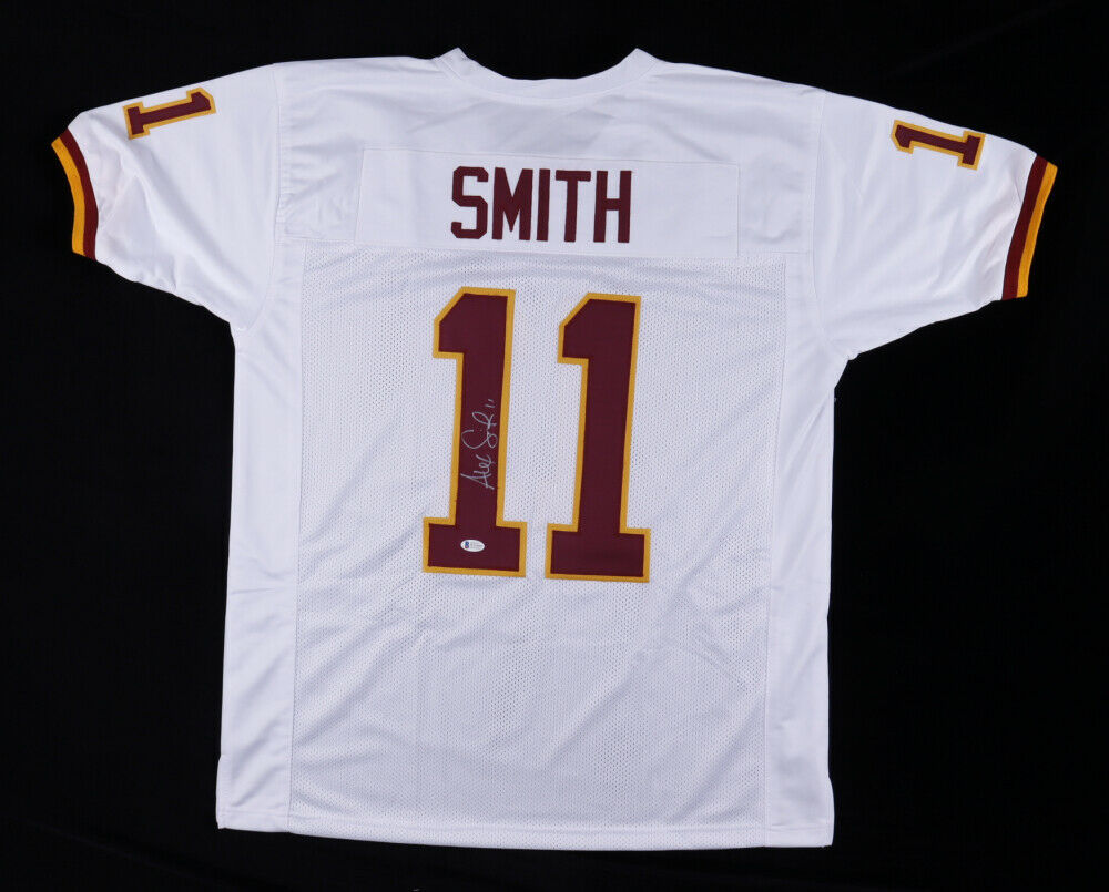 Custom on-field style jersey. Everything sewn on, size XL. Hand-signed in silver felt-tip pen by Alex Smith.The lot / autograph(s) includes an official James Spence Authentication (JSA) hologram and matching COA for authenticity purposes. The signing of this item was witnessed by JSA.Authentication: JSA COA Shop our ebay store / Friendly Confines Collectibles for thousands of different autographed jerseys